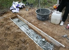 Затем выставляем в траншее опалубку и поэтапно заливаем её бетоном. Получившееся основание выставлено чётко в уровень земли и послужит надёжным гарантом того, что установленные на данный фундамент памятники уже никогда никуда не провалятся.