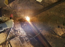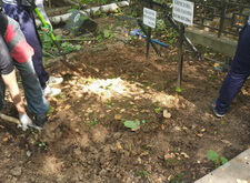 Для начала мы демонтировали уже имеющиеся элементы: снесли бетонный цоколь и изъяли стоящие кресты.