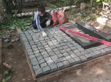 Укладка гранитной брусчатки,
