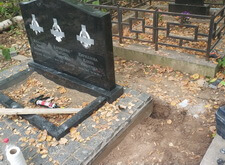 Приступаем к монтажу памятника. Привезли уже готовое надгробье, водрузили его на сделанное заранее основание, укрепили.