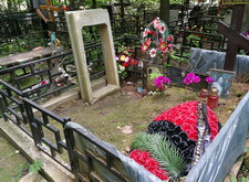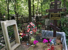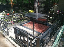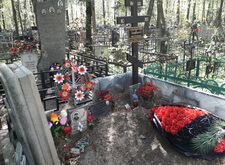 Изначально мы наблюдаем на участке могилу после очередного дозахоронения. На территории её находятся лишь деревянные кресты, снятый с места бетонный цоколь и достаточно простая оградка.