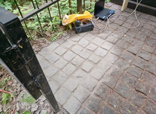 Разбираем разбитую в месте дозахоронения брусчатку, чистим стыки от лишнего бетона.
