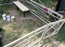 Затем мы красим оградку, выставляем по уровню памятник, дополнительно окрашиваем находящиеся на участке лавочку и столик. Вот как выглядело место захоронения на момент сдачи объекта.