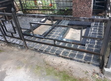 После того, как наземное покрытие высохло после замывки, установили новое надгробье и окрасили ограждение.