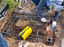 Между сваями ввариваем четыре арматурных кольца, которые послужат распоркой и придадут каркасу дополнительную жёсткость.