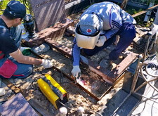 Первым делом мы приступаем к демонтажу объекта: разбираем основание, отодвигаем в сторону уцелевшие элементы надгробья.