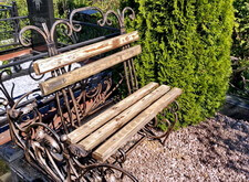 Наступает завершающий этап работы. Укладываем брусчатку (кроме декоративной функции, она служит дополнительной опорой цветнику. Если бы её на участке не было – нам бы пришлось залить периметр обычным бетоном, что смотрелось бы достаточно непрезентабельно), параллельно зачищаем лавочку и собираем на место памятник.