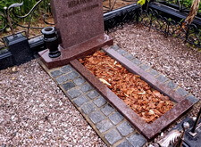 Так выглядит окончательный вариант места захоронения. В правую верхнюю часть надгробья мы установили заранее изготовленный элемент, на территорию участка досыпали каменную крошку, цветник наполнили мульчей.