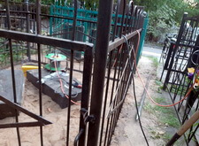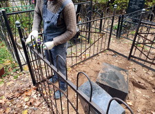 Затем мы демонтировали надгробье и приступили к уборке: с места захоронения были удалены все цветы, а так же кое-где проросшая трава.